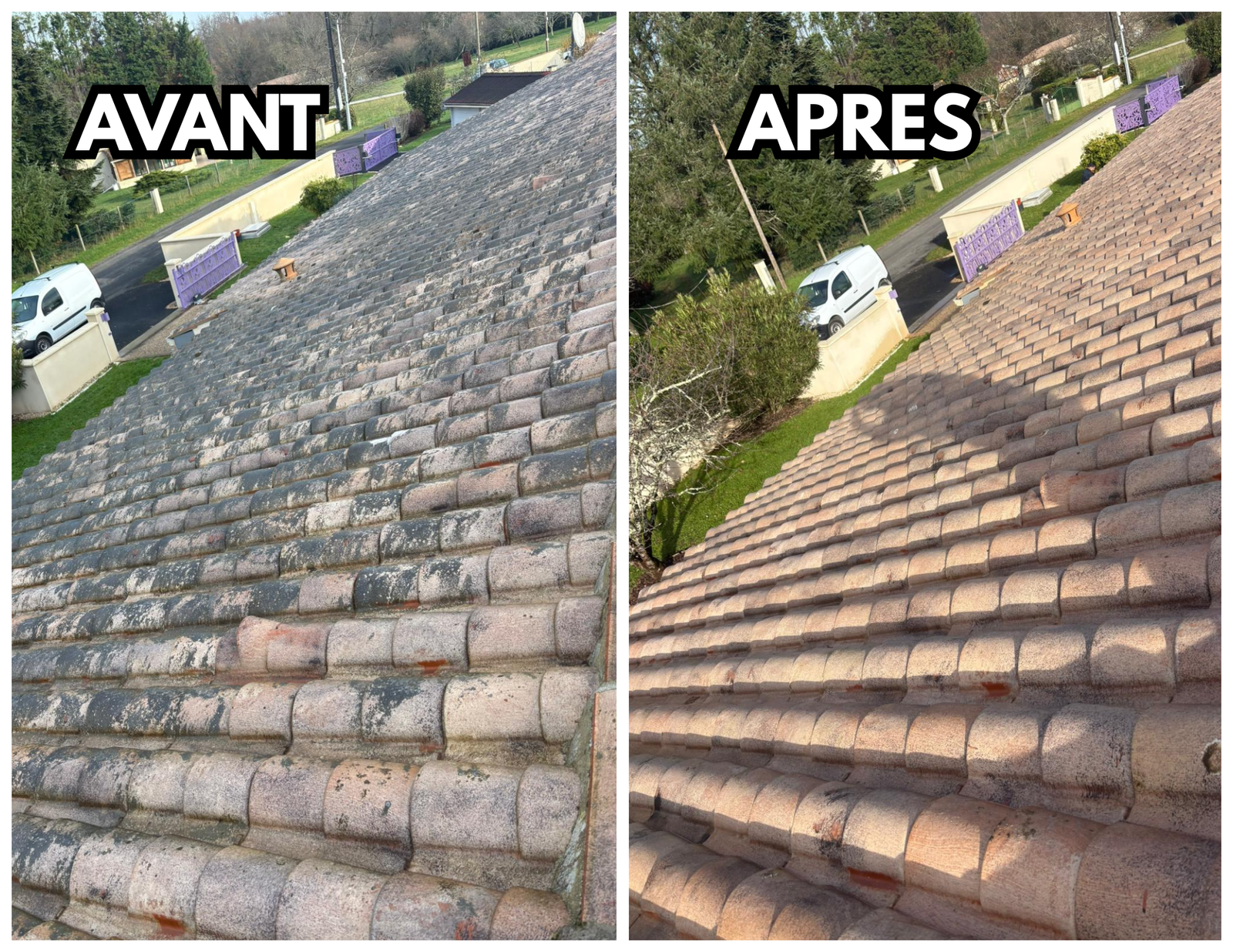 Éliminez mousses, saletés et traces noires de votre toiture pour prolonger sa durée de vie.